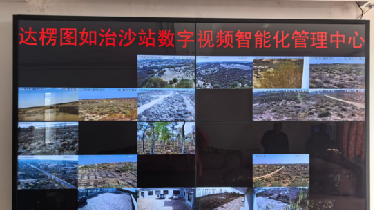 在达楞图如治沙站,调研人员参观了数字视频智能化管理中心建设以及运行情况,承建企业负责人详细介绍了"空天地智能一体化管护系统"的建设背景、技术架构及成效。通过智能化大屏直观了解到由28个智能监测杆组成的"数字哨兵"网络,已基本实现该旗重点林区的全覆盖,能精准识别早期火情、违法放牧、盗伐林木、破坏设施等行为。