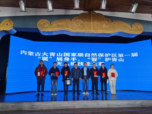 内蒙古大青山国家级自然保护区举办第一届“‘翼’展身手、‘智’护青山”无人机技能大赛, 2025年11月11日,内蒙古大青山国家级自然保护区成功举办第一届“‘翼’展身手,‘智’护青山”无人机技能大赛。本次大赛由管理局资源保护处主办,科研监测处、九峰山管理站及五道沟管理站协办,是保护区提升“科技护绿”水平的一次重要实践。来自管理局系统的28名选手齐聚赛场,充分展现了生态保护工作中的科技应用能力。管理局党委书记迟晓旭出席活动并致辞。比赛当日清晨,全部参赛人员通过现场抽签方式确定竞技顺序,确保赛事公平公正。随后,在管理局九楼会议室举行理论知识测试,内容围绕无人机安全操作等关键要点。测试结束后,参赛队伍统一乘车前往哈达门展开实操竞技。管理局党委书记迟晓旭致辞管理局党委书记迟晓旭在致辞中强调了大青山保护区的重要生态价值与科技在生态保护中的关键作用,鼓励选手充分展现技能、发挥水平,努力做守护大青山的“科技尖兵”。致辞结束后,选手们围绕模拟巡查巡护、火场观察、有害生物监测等实际工作内容展开实操竞赛。裁判组全程紧盯操作细节,现场进行评分。实操大赛现场经过激烈角逐,卜洞管理站付嵘荣获一等奖,卜洞管理站王强荣获二等奖,青山管理站崔伟、卜洞管理站魏浩哲、上高台管理站张浩宇3人荣获三等奖;乌兰察布分局获评优秀组织奖。管理局党委书记迟晓旭为获奖选手颁发证书与奖品,现场掌声热烈,全体人员合影留念,定格这一难忘时刻。颁奖现场此次大赛采用“理论+实操”双线考核模式,全面检验参赛人员的技能水平,既为保护区工作人员搭建了高效的交流平台,也为无人机等新技术在保护区内的推广应用注入了新动能。下一步,大青山管理局将认真总结大赛经验,推动此类竞赛常态化开展,助力无人机技术更好地服务于大青山的生态保护事业。