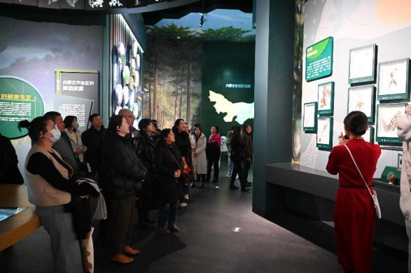 深学全会精神 感悟北疆荣光——内蒙古自治区林业和草原工作总站赴内蒙古博物院开展主题党日活动, 为深入学习贯彻党的二十届四中全会精神,切实把思想和行动统一到全会部署要求上来,感悟新时代内蒙古发展成就与生态担当,近日,自治区林草工作总站党支部组织全体党员干部赴内蒙古博物院“亮丽内蒙古”展厅开展主题党日活动,通过实地研学促进思想提升,借实景感悟强化使命担当。活动中,党员干部跟随讲解员脚步沉浸式观展,展厅内“林海奇观”“草原千姿”等生态展区生动呈现内蒙古森林、草原、湿地等典型生态风貌。从莽莽林海到辽阔草原,从山峦碧波到戈壁荒漠,横跨“三北”的内蒙古生态环境明显好转,实现了“沙进人退”向“绿进沙退”的重大历史转变,全区草原综合植被盖度稳定在45%以上,10年间提高5个百分点。让党员深刻体会内蒙古筑牢祖国北疆生态安全屏障的责任使命。参观过程中,党员们不时驻足凝视、交流感悟,在实物展品与场景还原中,真切感受党的领导下内蒙古在生态保护、民生改善等领域的历史性成就,深化对全会精神的理解与把握。参观结束,党员干部纷纷表示此次活动以“实景课堂”形式让理论学习更鲜活、更深刻。下一步,工作总站党支部将以党的二十届四中全会精神为指引,深刻领悟“两个确立”的决定性意义,增强“四个意识”、坚定“四个自信”、做到“两个维护”,把参观感悟转化为工作实效,立足岗位践行绿色发展理念,扎实推进林草生态建设、国土绿化、产业发展、森林草原保险、古树名木保护等重点工作,以实干担当为内蒙古高质量发展、美丽中国建设贡献力量。