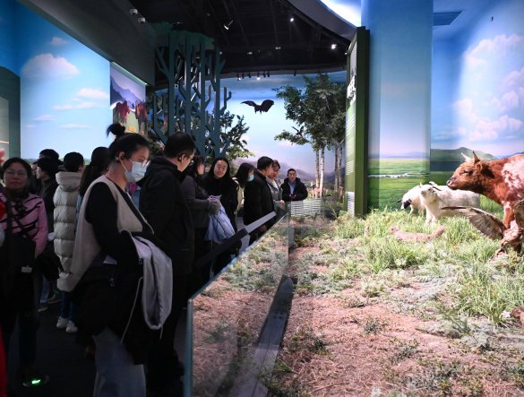 活动中,党员干部跟随讲解员脚步沉浸式观展,展厅内“林海奇观”“草原千姿”等生态展区生动呈现内蒙古森林、草原、湿地等典型生态风貌。从莽莽林海到辽阔草原,从山峦碧波到戈壁荒漠,横跨“三北”的内蒙古生态环境明显好转,实现了“沙进人退”向“绿进沙退”的重大历史转变,全区草原综合植被盖度稳定在45%以上,10年间提高5个百分点。让党员深刻体会内蒙古筑牢祖国北疆生态安全屏障的责任使命。参观过程中,党员们不时驻足凝视、交流感悟,在实物展品与场景还原中,真切感受党的领导下内蒙古在生态保护、民生改善等领域的历史性成就,深化对全会精神的理解与把握。