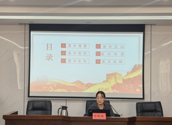 自治区林草局机关党委徐艳艳同志围绕 “党支部标准化规范化建设”,紧扣基层党建工作的“根”与“魂”,聚焦“三会一课”、主题党日、组织生活会等核心制度展开系统讲解,内容务实具体、指导性极强,为锻造政治过硬、业务精湛的林草基层党建队伍注入了强劲动力。