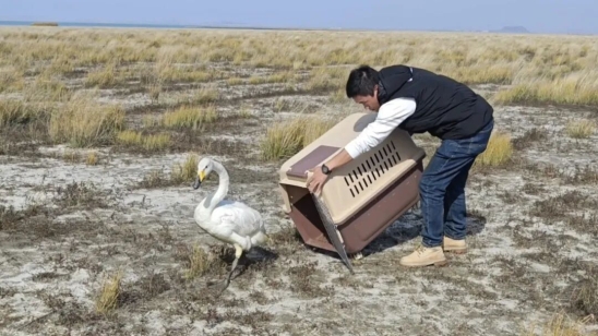 克什克腾旗林草局救助放飞野生大天鹅, 金秋时节,克什克腾旗林业和草原局携手达里诺尔国家级自然保护区,于达里湖北岸成功放飞一只康复的国家Ⅱ级重点保护野生动物大天鹅。随着洁白羽翼舒展,大天鹅重返广袤自然,这一行动是克什克腾旗深入贯彻习近平生态文明思想、践行“人与自然和谐共生”发展理念的生动实践。该大天鹅被送至克旗野生动物救助站时,翅膀存在明显外伤。经工作人员精心护理与科学喂养,大天鹅逐步恢复了飞行能力和自主觅食能力,经专业评估符合野外放飞标准。为保障大天鹅顺利回归自然群体,工作人员将放飞点选定在达里诺尔国家级自然保护区,此处是候鸟迁徙的重要通道,能够帮助力大天鹅快速融入北飞的大天鹅集群,重归自由天空。今年以来,克什克腾旗已累计成功救助野生动物20只,其中包括金雕、草原雕等国家Ⅰ级重点保护野生动物,以及雕鸮、雀鹰、红隼等国家Ⅱ级重点保护野生动物。下一步,克什克腾旗林草局将持续深耕野生动物保护领域,不断完善救助机制、强化生态安全防线,以实际行动为构建人与自然和谐共生的美丽克什克腾旗、推动生态文明建设高质量发展持续发力。