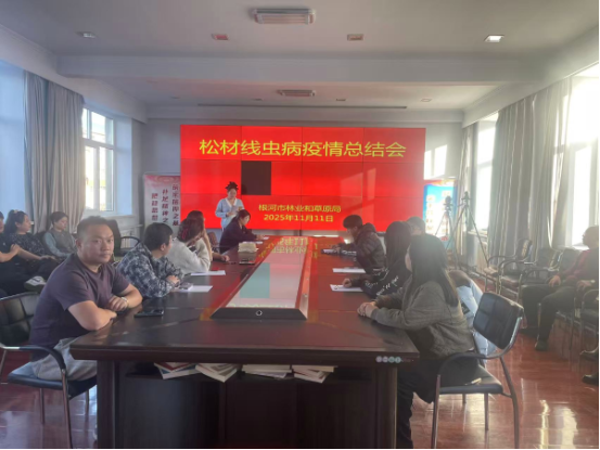 2025年11月11日,根河市林业和草原局组织召开松材线虫病疫情“五年攻坚”行动工作总结会。松材线虫病被称为松树“癌症”,具有传播快、致死率高的特点,防控难度极大。根河市林业和草原局在“十四五”期间坚守生态防控阵地,圆满完成松材线虫病疫情“五年攻坚”行动,实现辖区内全过程无疫情发生,筑牢了区域森林生态安全屏障。