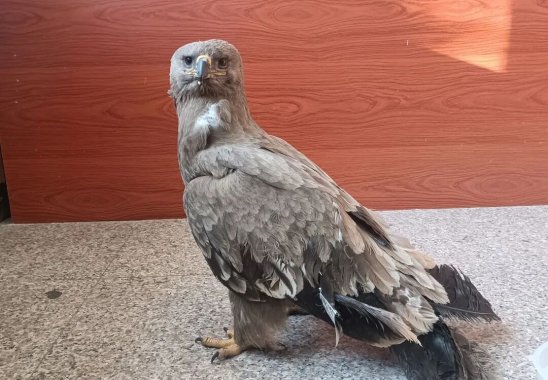 暖心接力!林西县成功救助国家一级保护动物草原雕 , 11月17日,林西县林业和草原局森保湿地站接到县公安局食药环侦查大队消息,辖区居民杨先生在306国道吉林坝路段发现一只疑似受伤的大型猛禽,已及时送至该大队寻求帮助。接到消息后,林西县林草局迅速组织专业人员第一时间赶赴现场处置。经专业鉴别,这只“大鸟”正是国家一级重点保护野生动物——草原雕,属于大型猛禽,体长可达70-80厘米,翼展超1.6米,是草原生态系统中的顶级掠食者,被称为“大自然的清洁工”,对维持生态平衡有着重要意义。工作人员仔细检查发现,草原雕无外伤痕迹,但精神不振、体力虚弱,无法正常飞行。结合近期林西县持续的大风天气,推测其因强风影响难以捕猎觅食,导致体能透支,才被迫停留在路边。在林西县林业和草原局救助点,工作人员为草原雕投喂了适宜的肉类食物,补充其能量。考虑到草原雕身体虚弱,需要更专业的养护环境,经研究决定,将其转运至克什克腾旗野生动物救助站进行后续照料。据悉,克什克腾旗救助站是专业的野生动物救助机构,配备了完善的医疗设施与活动场地,已成功救助许多野生动物,具备丰富的猛禽养护经验。待草原雕体能完全恢复、具备野外生存能力后,救助站将选择合适时机让其重返自然。从杨先生的及时援助,到公安与林草部门的高效联动,再到专业救助站的接力守护,这场跨越多部门的救助行动,生动践行了“人与自然和谐共生”的生态保护理念。