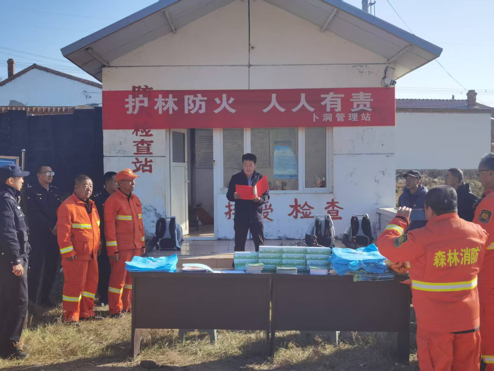 做严做实防火禁牧宣传 群防群治共护青山家园——乌兰察布分局卜洞管理站开展抓严抓实防火禁牧和野生动物保护主题党日暨宣教活动, 为深入贯彻落实习近平生态文明思想,切实增强保护区群众的森林草原防火责任意识和生物多样性保护能力,10月21日,乌兰察布分局卜洞管理站联合卓资县林草局、复兴乡、红召乡人民政府、大青山森林公安局上高台派出所,共同开展了以“抓严抓实防火禁牧和野生动物保护”为主题的党日暨宣教活动。卜洞管理站党支部书记、站长杨银柱发表活动致辞本次活动采取“宣传教育与实地巡护相结合、定点宣传与流动巡查相补充”的方式,重点开展了五项具体工作:一是在防火检查站向过往游客和群众发放《森林防火宣传手册》《中华人民共和国野生动物保护法》等宣传资料,工作人员以通俗易懂的语言讲解防火法律法规和日常防火注意事项,特别提醒群众严禁野外违规用火。二是在管护点办公区、东风行政村主干道、入山路口等关键位置,书写醒目的宣传标语,增强宣传覆盖面和群众参与度。三是走进农家院落,向群众发放印有防火标语的围裙、抽纸等实用宣传品160余份,让防火理念以更加贴近生活的方式深入人心。四是组织巡护队员深入林区开展防火检查和巡山巡林工作,排查林间草地火源火种、清理易燃垃圾,并全程启用“智绘巡护”系统,确保巡护工作无死角、可追溯。五是组织半专业扑火队在山脚下使用割草机清理出20余米的防火隔离带,切实提升了队伍的实战能力和责任意识,为维护保护区森林草原防火安全形势持续稳定提供了有力保障。书写宣传标语本次活动得到了多家单位部门对生态保护工作的积极响应与支持,有效提升了辖区干部群众的森林草原保护和野生动物守护意识,为今后保护区各项工作奠定了扎实基础。下一步,管理站将以此次活动为契机,持续深化党建引领生态保护工作机制,紧盯防火关键期,推动防火宣传常态化、服务群众精准化,促进防火意识深植乡村,为筑牢北方重要生态安全屏障汇聚更广泛的群众力量。