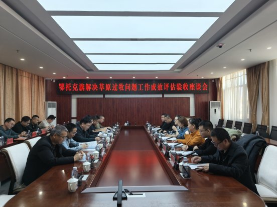 评估期间,工作组召开专题座谈会,详细听取了伊金霍洛旗、乌审旗、鄂托克旗人民政府关于全面解决草原过牧问题的工作汇报。评估组严格对照评估办法,通过核查资料、问询交流等方式,对鄂尔多斯市相关工作落实情况进行了逐项核查与验收,系统评估了鄂尔多斯市在解决草原过牧问题上的工作成效。