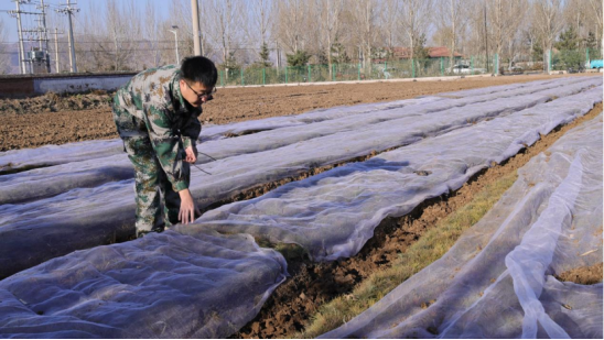 于是记者走上前和李向南聊了起来,李向南告诉记者:“这盖的是防寒土,相当于给树苗盖了一层冬被,冬天如果不盖这层防寒土,树苗就会被冻死。”