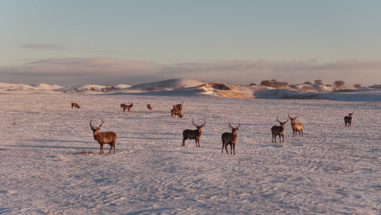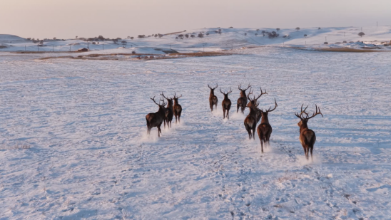 冬日的克什克腾旗贡格尔草原上已是白雪皑皑,一群野生马鹿正低头觅食。它们体形健硕,毛色棕褐,头顶的鹿角形态各异。察觉到镜头后,领头的雄鹿抬头警觉张望,确认无虞后便继续带领种群活动,时而追逐奔跑,时而驻足聆听,与周边的生态环境构成了一幅和谐的自然画卷。据保护区工作人员介绍,如此大规模、可以近距离拍摄到的野生马鹿种群,近年来出现的越来越频繁。