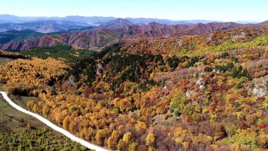 喀喇沁旗美林镇秋天的山林五彩斑斓。