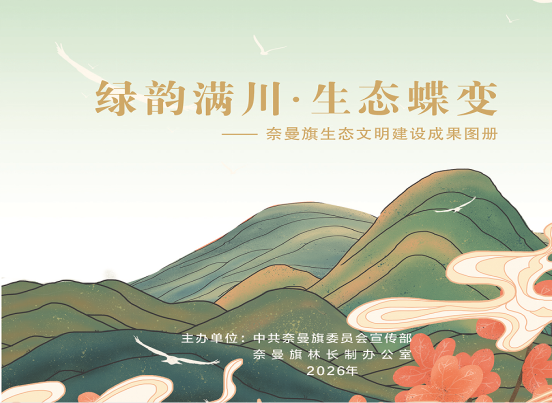 奈曼旗印制《绿韵满川•生态蝶变》图册 , 奈曼旗位于通辽市西南部,地处科尔沁沙地腹地,土地沙化退化严重,生态环境十分脆弱。多年来,奈曼旗各族群众始终以坚韧不拔的毅力向沙宣战、与绿同行。特别是党的十八大以来,奈曼旗坚持以习近平生态文明思想为指导,牢固树立绿水青山就是金山银山的理念,坚定不移地实施“生态立旗”发展战略,坚持走生态优先、绿色发展为导向的高质量发展之路,持续推进山水林田湖草沙一体化保护和修复工程,大力推进林长制工作,全面启动科尔沁沙地歼灭战,让绿色成为奈曼发展的“底色”。 为大力弘扬“三北精神”,全面总结奈曼旗生态文明建设历程,培育壮大林草产业,不断筑牢生态安全屏障,按照习近平总书记在2025年4月3日参加首都义务植树活动时提出的“绿化祖国必须坚持扩绿兴绿护绿‘三绿’并举,推动森林水库、钱库、粮库、碳库‘四库’联动”讲话精神,奈曼旗委宣传部、奈曼旗林长制办公室从“三绿”并举的视角制作了“绿韵满川•生态蝶变”图册,精选二百余幅珍贵影像,从“扩绿”的艰辛起步,到“兴绿”的产业融合,再到“护绿”的长效守护,图册全方位、多角度展现奈曼旗生态环境从“沙进人退”到“绿进沙退”的历史性转变。 图册共分为三个篇章,收录了自上世纪70年代末期至十四五期末奈曼旗生态建设不同阶段工程措施、群众参与、创新模式、草原修复、治理成效、模范人物、沙地经济、示范基地、林草产业、国家公园、绿富同兴、林长履职、林草管护、资源管理、科技赋能、行政执法、构筑屏障、和美乡村等多纬度内容,讲述奈曼人用汗水浇灌绿色、用行动守护家园的动人故事,为全旗各族群众了解奈曼、热爱家乡、保护生态、厚植绿色提供了鲜活的历史印记。让观众在光影流转间,感受奈曼旗生态之美、发展之韵,凝聚起共同守护绿色家园的强大力量。 生态兴,则文明兴。制作这本图册让更多人了解土地沙化退化带给奈曼乃至科尔沁沙地上生活的困境,呼吁大家以史为鉴,良好的生态环境是生存的根本,珍惜来之不易的生态建设成果,应更加爱惜和保护生态环境。在新征程的起点上,积极践行生态优先、绿色发展的新时代奈曼理念,不畏艰辛,久久为功,人人成为生态保护的参与者、推动者、守护者,共同守护我们赖以生存的美丽家园。在“两山”理论的实践上凝聚共识,在生态保护与高质量发展的道路上稳步前行,书写更多“绿韵满川、百姓富足”的新篇章。