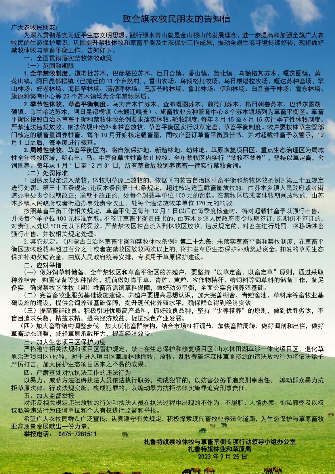 通辽市扎鲁特旗加大政策宣传力度 稳步推进禁牧休牧与草畜平衡工作,