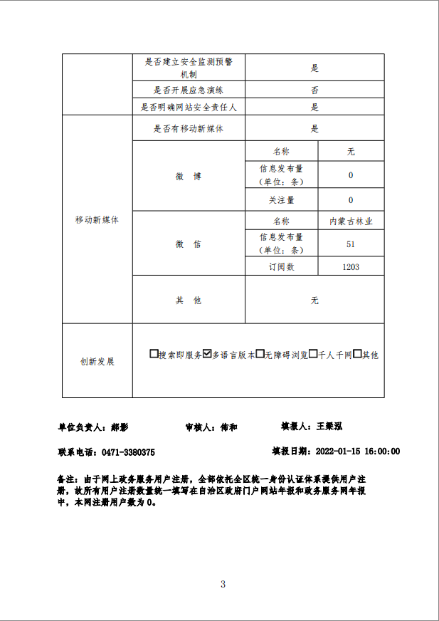 内蒙古自治区林业和草原局政府网站工作年度报表(2022年度)